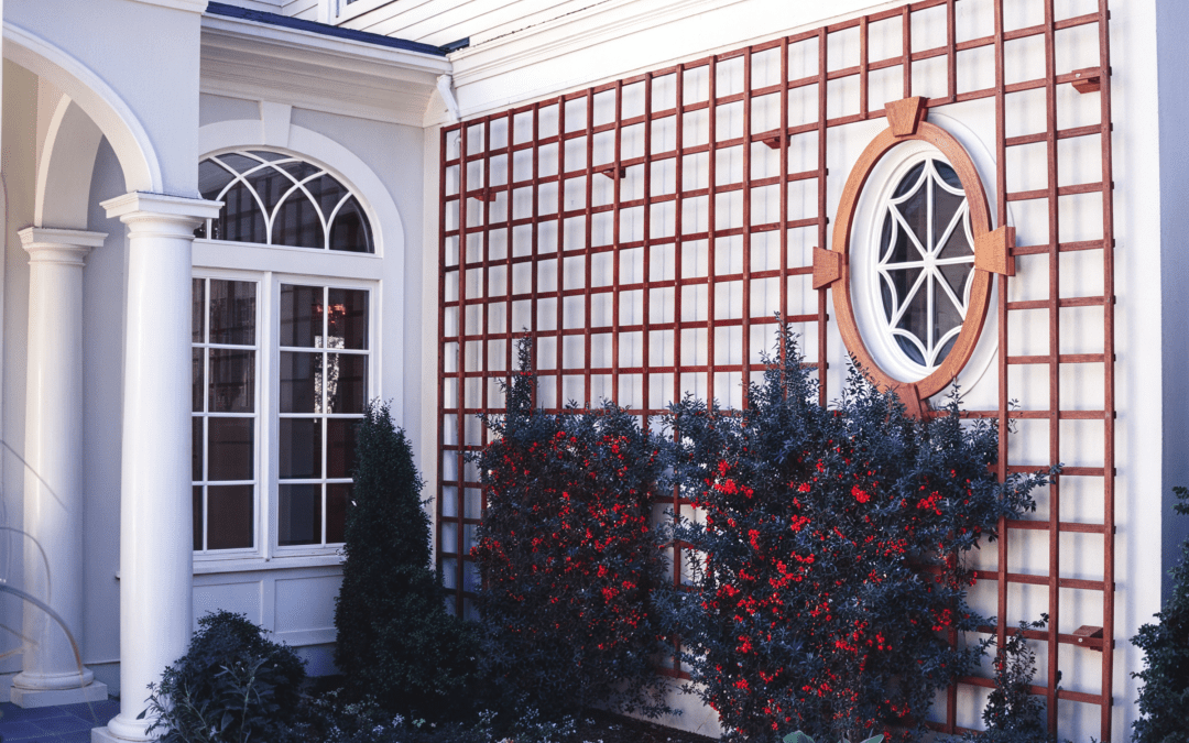Trelliswork Accents a Wall No. CT2 Sep 25, 2023 | Additional Custom Work, Custom Treillage Trelliswork Accents a Wall No. CT2 A simple grid is used to soften a blank wall and to accent an oval window.