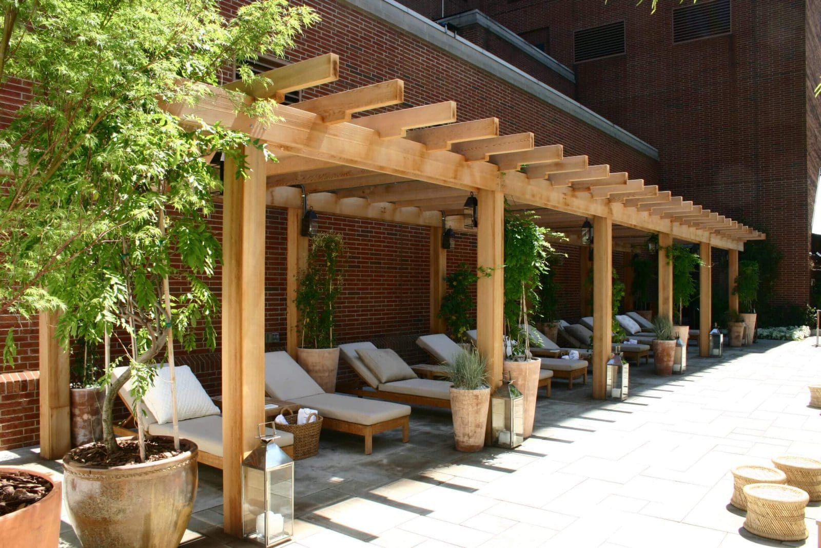 Added shade can be achieved with the introduction of fabric canopies or acrylic inserts placed between the rafters.